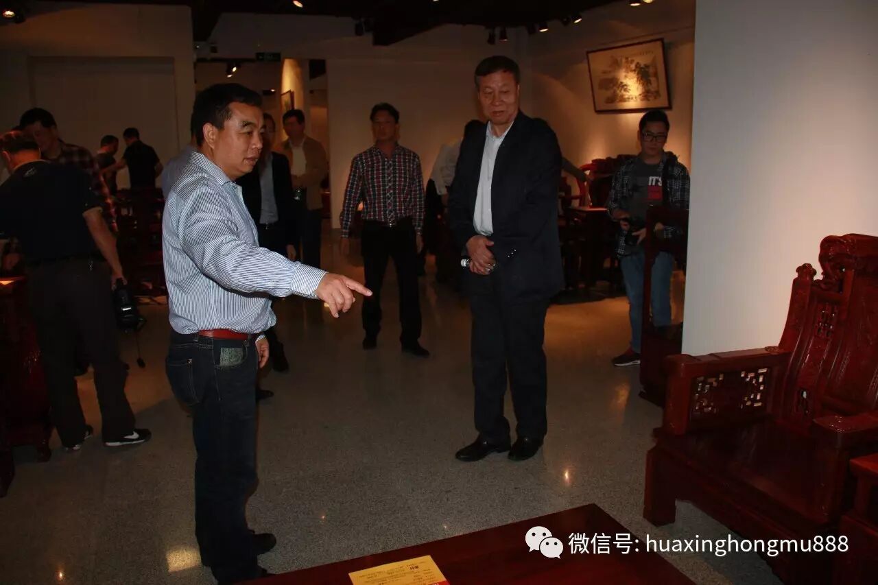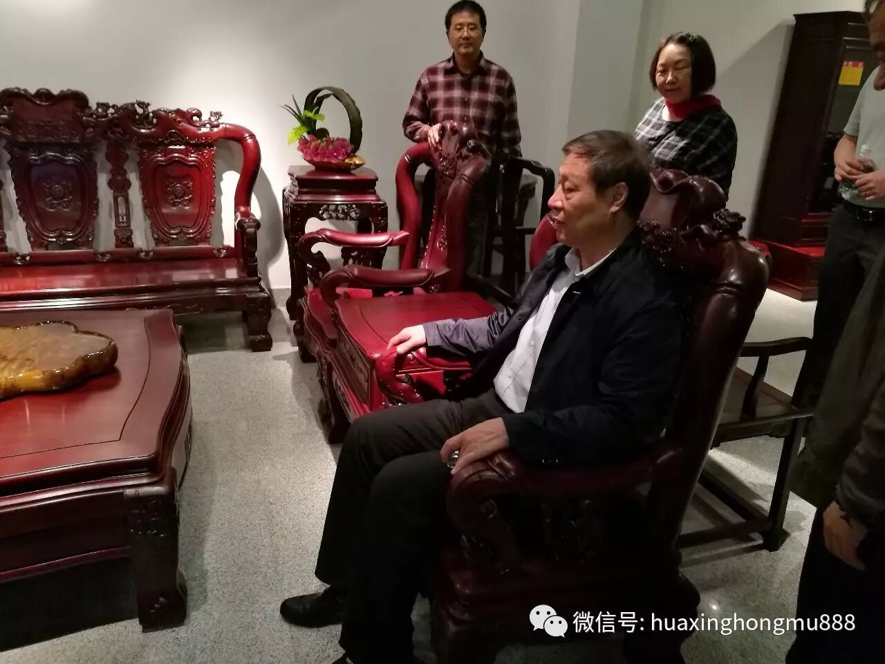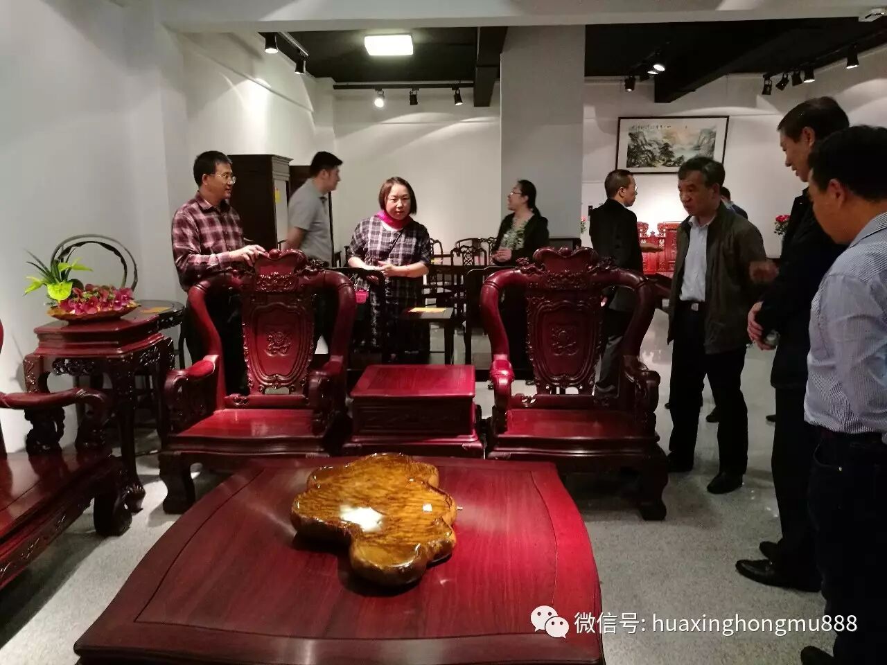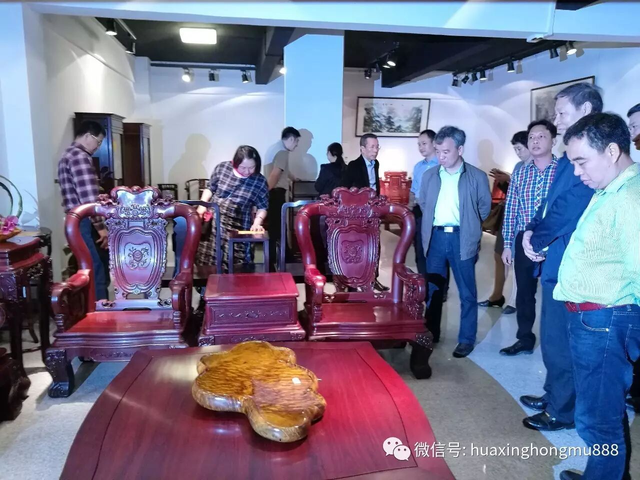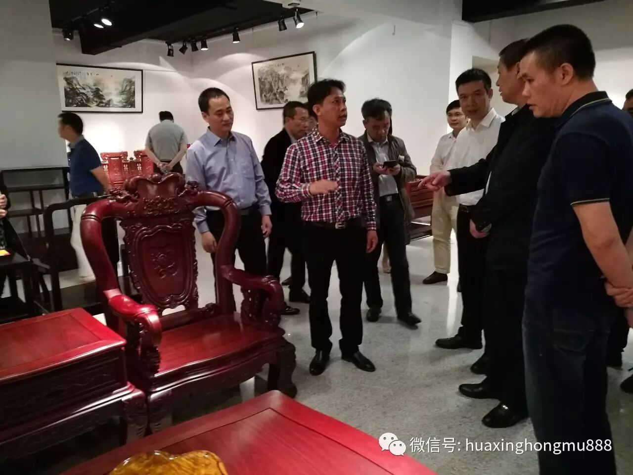 在华兴红木总经理陈国贤的邀请下,专家考评组成员一行参观华兴红木家具展厅。