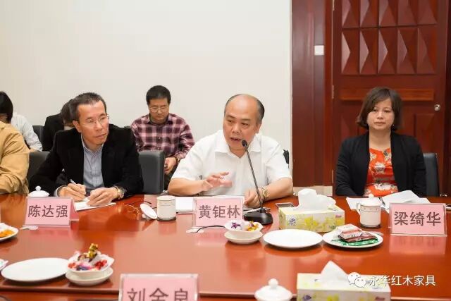 4月27日,中国家具协会专家考评组对我镇申报“中国广作红木特色小镇”工作极为重视,莅临华兴红木进行考评工作。中国家具协会副理事长刘金良,副秘书长吴国栋、潘晓霞,南京林业大学家居与工业设计学院教授、院长吴智慧,顺德职业技术学院设计学院教授刘晓红,广州市家具协会秘书长陈允参加考评,由石碁镇党委书记黄钜林,党委副书记、镇长方宝城,石碁镇党委、副镇长许兆玲,石碁镇党委委员梁绮华,永华红木董事长陈达强,永华红木副总经理邱志坤,华兴红木总经理陈国贤热情接待。石碁镇党委副书记、镇长方宝城汇报石碁镇红木家具行业概况,特色小镇建设工作,让专家考评组进一步了解红木产业区政策、规划、规模、技术、公共技术平台建设等情况。